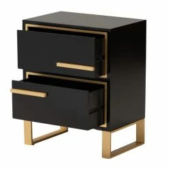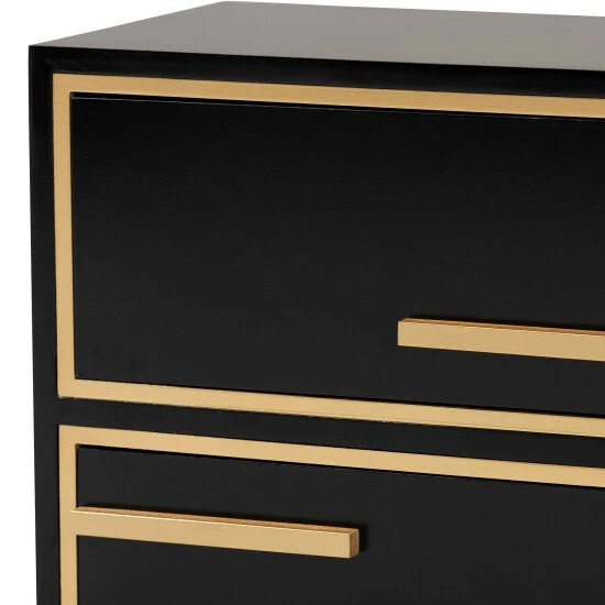 Enrich the character of your living room with the luxurious efficacy of the Giolla end table. Made in China, this stunning piece consists of a solid wood frame accentuated with sleek visual texture. Two drawers offer space to organize daily essentials while elongated drawer handles create a striking display of crisp geometry. The Giolla requires assembly and features rectangular metal legs for excellent stability and support in sleek design. Embracing the glamour of modern minimalism, the Giolla end table is sure to boost any living room layout.