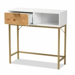 Steeped in contemporary glamour, the Giona console table uplifts the potential of any layout. Made in China, this stunning piece is comprised of a wood frame atop a solid metal base. The rectangular tabletop and open shelf serve as lovely display areas, while the drawer offers secure storage space. The Giona requires assembly and features a minimalist metal base for excellent stability and support in modern style. The wood grain lends visual texture, making the Giona console table a fantastic addition to any space.