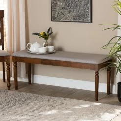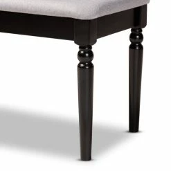 Enhance your dining space with the graceful comfort of the Giovanni dining bench. Made in Malaysia, the Giovanni is comprised of sturdy wood finished in a rich dark brown. Equipped with a large foam-padded cushion upholstered in soft fabric, the Giovanni provides exceptional seating comfort. Requiring assembly, the bench features ball turned legs for a classic look. The elegant and versatile Giovanni dining bench works well with a dining set or as an accent piece in the entryway…