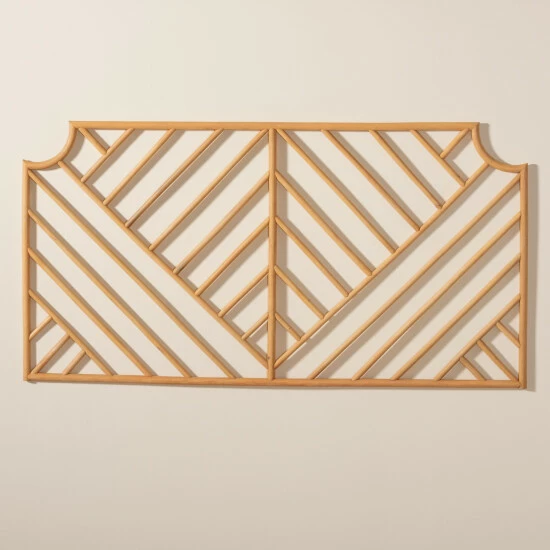 Restore the tranquil nature of your bedroom with the serene Giza headboard. Made in Indonesia, this stunning piece is handcrafted from natural rattan by skilled artisans. Bold rattan rods are laid in a chevron-like pattern for an exotic twist on modern geometry. The Giza will arrive fully assembled and features a wall-mountable design that quickly and easily transforms any bedroom space. Concave corners complete the look, making the Giza headboard a beautiful bedroom backdrop.