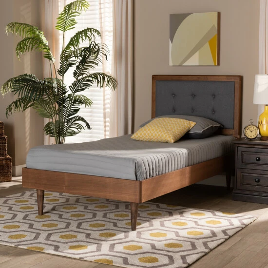 Revamp your bedroom with the vintage charm of the Greta bed. Made in Malaysia, this bed is constructed from sturdy wood in a warm walnut finish. Its headboard is upholstered in a soft, resilient fabric and padded with plush foam to provide superb comfort for you to lean against while reading or watching TV. Requiring assembly, the Greta utilizes wood slats for mattress support, which eliminates the need for a box spring. Button tufting adds a refined touch, making the Greta bed an easy and elegant addition to any bedroom.. Ideal for smaller dining rooms and nooks, the Sanford dining nook set rejuvenates any space.