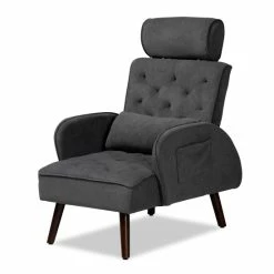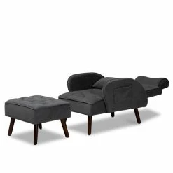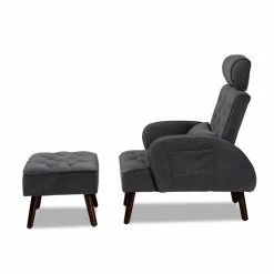 The inviting design of the Haldis chair and ottoman ย ย set gives your home a cozy spot to relax and take it easy. Made in China, ย ย this set includes one recliner chair and one ottoman made from sturdy wood ย ย and upholstered in luscious velvet fabric. The chair features reclining ย ย capability for maximum comfort while a convenient side pocket offers space ย ย for remotes, books, and more. Requiring assembly, the Haldis radiates ย ย contemporary personality with an elegant diamond-tufted design. A delightful ย ย and visually stunning addition, the Haldis chair and ottoman set enhances the ย ย modern interior.