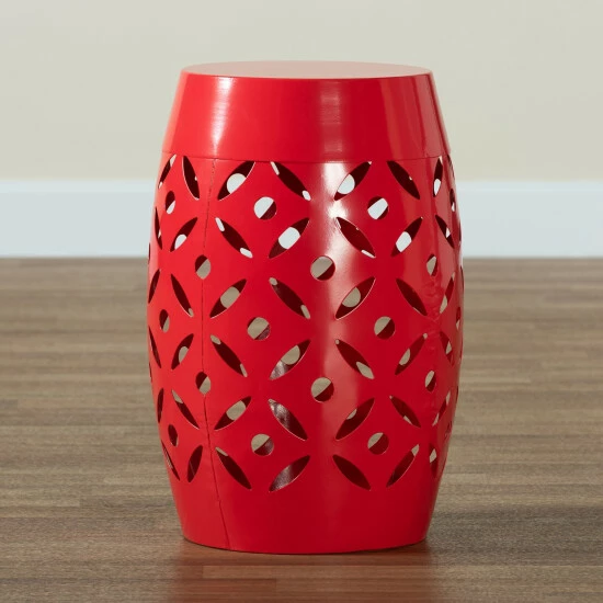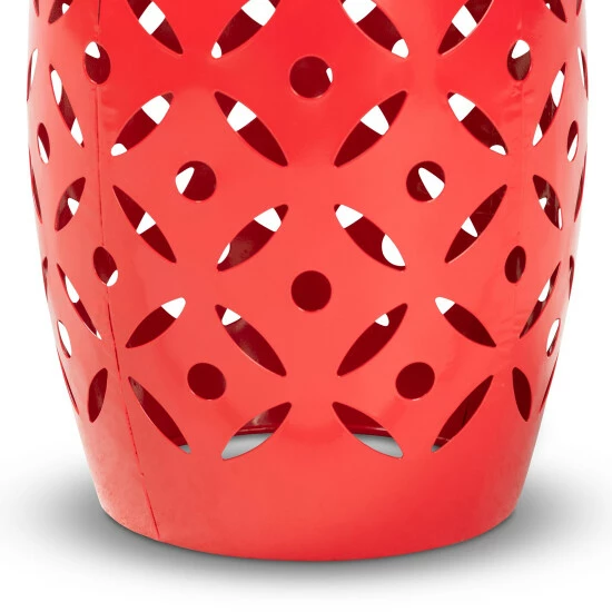 Add the finishing touch to your outdoor layout with the Hallie side table. Made in China, this table is constructed from solid metal featuring a cool aqua finish. A geometric cut-out design on the sides of the table presents a unique, graceful display while allowing light to pass easily through its frame. The Hallie will arrive fully assembled and utilizes a barrel shape for excellent stability. Whether used for outdoor decorations or snacks and drinks, the Hallie side table is a lovely accent to any patio or deck.