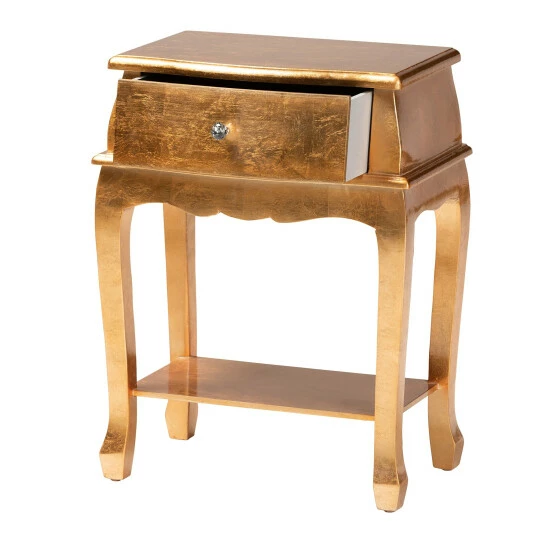 Develop a flourishing living room environment with the lovely Harriet end table. Made in China, this lovely piece consists of a solid wood frame adorned with a shimmering faux crystal drawer knob. The wide drawer offers space to organize space essentials while the open shelf accommodates larger items and serves as a wonderful display for decorations. The Harriet will arrive fully assembled and features cabriole legs for superb stability and support in lavish design. A wonderful expression of traditional artistry, the Harriet end table elevates any living room arrangement.