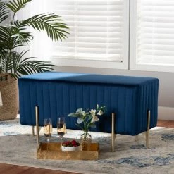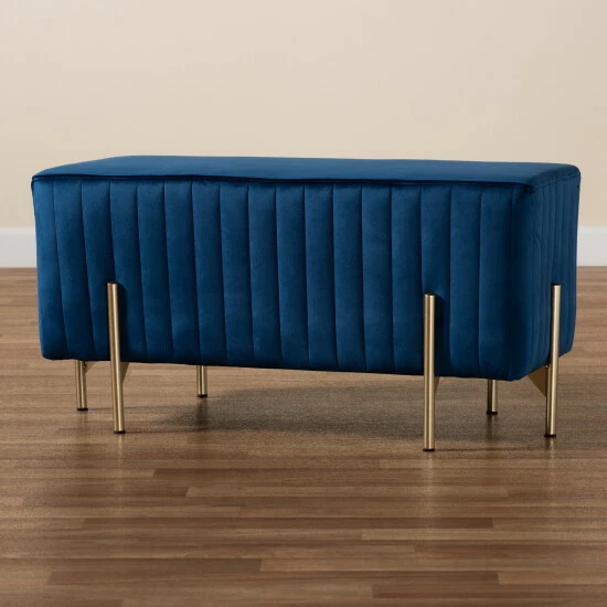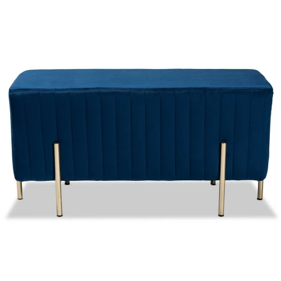 Elevate the atmosphere of your interior with the modern luxury of the Helaine bench. Made in China, this lovely bench is comprised of a sturdy wood frame padded with plush layers of foam and upholstered in luscious velvet fabric. Sleek channel tufting on each side gives the bench visual texture and depth while highlighting the rich hues of the fabric. Requiring assembly, the Helaine is supported by minimalist metal legs for excellent stability and support in chic design. An exquisite accent to space, the Helaine bench is sure to leave an impression…