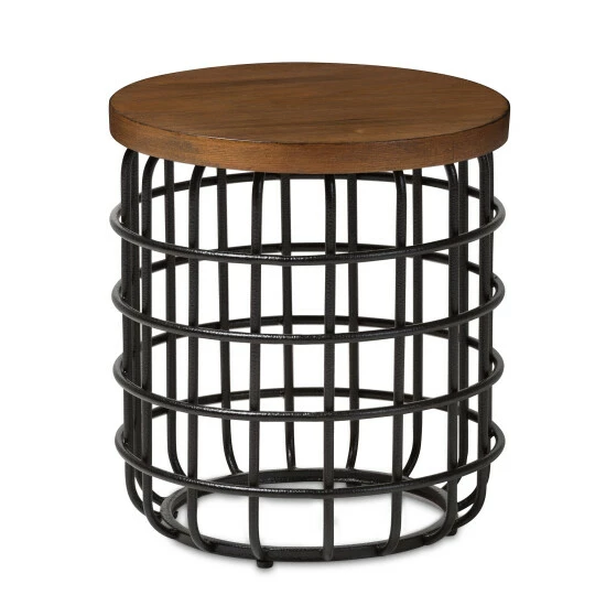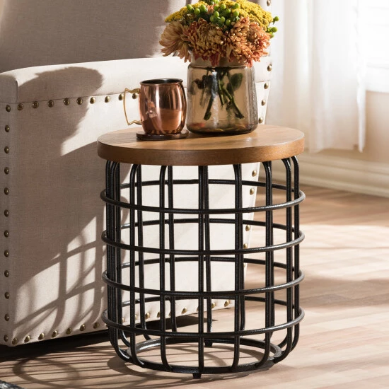 Perfect for introducing an industrial accent to your living area. The Heli is crafted from a bold, interlacing metal frame and distressed oak veneered wood top. This side table may be smaller in size, but it is powerful in design. This table will be an eye-catching addition to your urban loft or contemporary bedroom. Made in China, the Heli requires assembly.