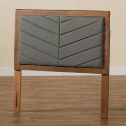 Give your bedroom a contemporary touch with the sleek design of the Iden headboard. Made in Malaysia, this headboard is constructed from sturdy wood in a walnut brown finish that adds natural warmth. Chevron tufted fabric creates a cool, geometric backdrop for your bedroom, while plush foam padding provides superb comfort for you to lean against as you sit in bed. Requiring assembly, the Iden features six pre-drilled holes in its legs that offer five unique height configuration options. Providing cozy comfort in eye-catching style, the Iden headboard is an outstanding addition to any space.