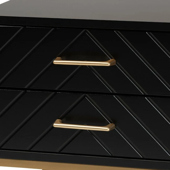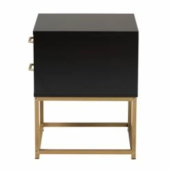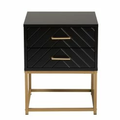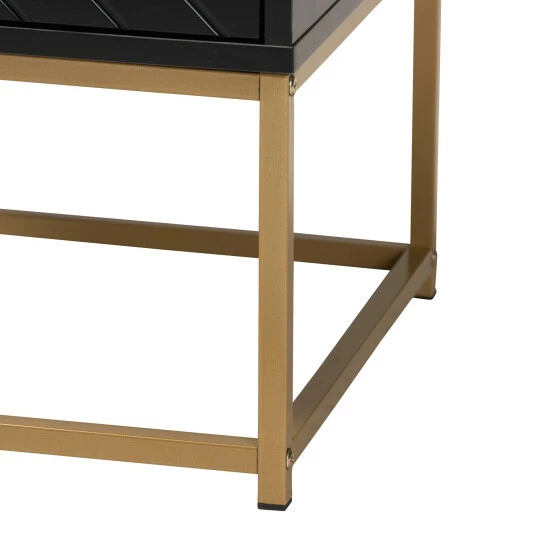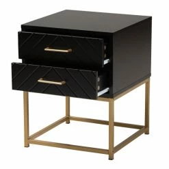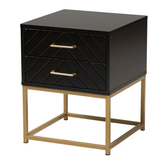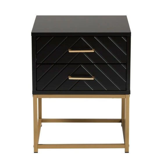 Imbue your living room with an air of luxury with the dazzling charm of the Inaya end table. Made in China, this stunning piece consists of an openwork metal base that supports a solid wood tabletop. Two drawers provide discreet storage to organize space essentials while reserving the tabletop for daily use. The Inaya requires assembly and features sleek metal handles as well as textured drawer faces for an attention drawing display. An easy yet sophisticated addition, the Inaya end table serves as a glamorous living room accessory.