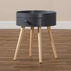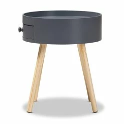 Add cool, quirky style to your living room with the Jessen end table. The Jessen features a tray-style top, ideal for keeping phones and other items secure. One drawer, fitted with a round knob, provides space to store space essentials.