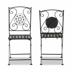 Dine under the soothing warmth of the sun with the remarkable Julius outdoor dining chair. Made in China, this chair is comprised of a sturdy metal frame. Its backrest features an open design embellished with a stunning mosaic design made from colored glass accents. The Julius will arrive fully assembled and features a foldable design for easy organization and storage when not in use. Showcasing artistic character, the Julius outdoor dining chair lends a touch of elegance to any outdoor lounge area. . . .