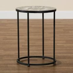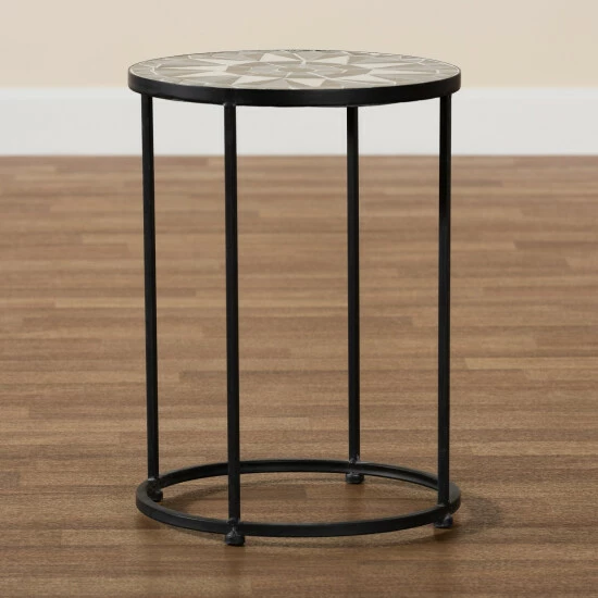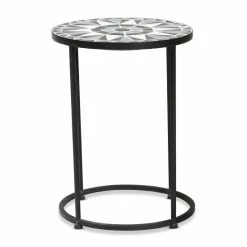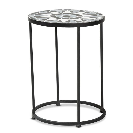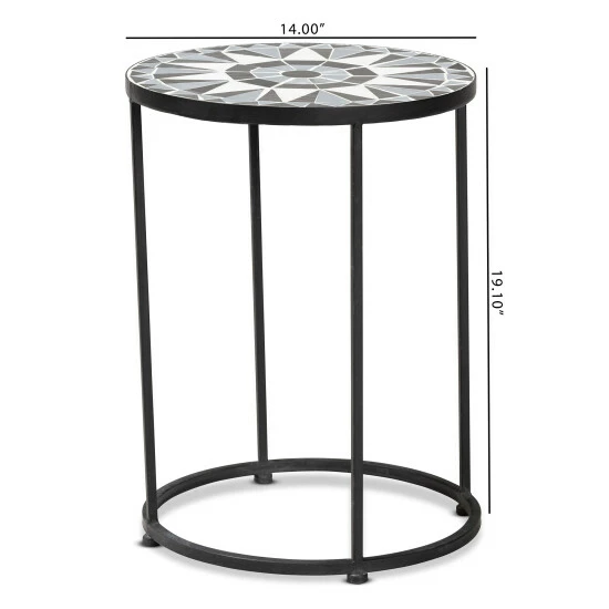 Advance the capabilities of your backyard with the wonderful design of the Kaden outdoor side table. Made in China, this table is constructed from solid metal. The round tabletop is decorated in colored glass accents that combine to form a visually stunning, mosaic pattern. The Kaden will arrive fully assembled and features an uncluttered, open design that allows light to flow naturally throughout the area. A spectacular accent piece to pull any patio or deck together, the Kaden outdoor side table is sure to leave an impression.