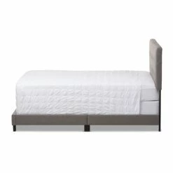Furnish your bedroom with this classy, contemporary bed from Baxton Studio. This bed features a tufted headboard and bed frame with your choice of grey or beige upholstery. The low-profile height gives the bed a sleek, space-saving look.