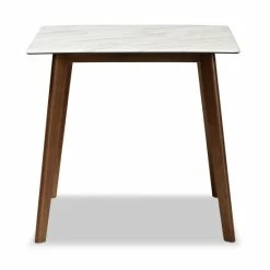 Create a wonderful focal point in your dining room with the stunning Kaylee dining table. Made in Malaysia, the Kaylee is comprised of a sturdy wood frame fitted with a striking faux marble tabletop. This spectacular piece features a square tabletop to ensure each member of the table has ample elbow room. Requiring assembly, the splayed legs showcase a walnut brown finish for a unique color contrast that complements the modern home. A fantastic addition to contemporary settings, the Kaylee dining table elevates any dining experience…