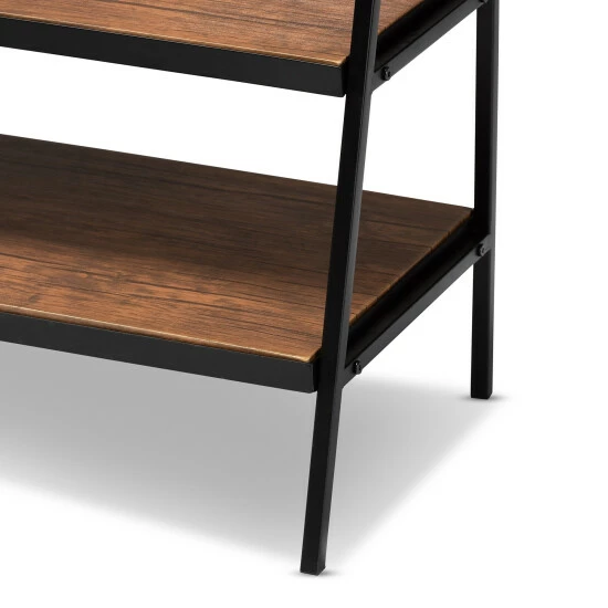Add rustic style to your entryway with the Laima coat rack. This versatile piece combines seating and storage into one, making it an ideal option for optimizing your space. A durable black metal frame supports three shelves crafted from distressed wood.
