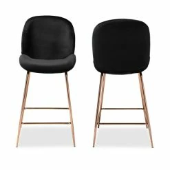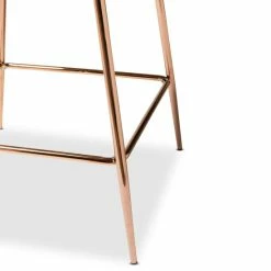Design an extraordinary lounge area with the lavish Lander counter stool. Made in China, this stool is comprised of a strong metal and wood frame padded with soft foam and upholstered in lush velvet fabric. Its rounded backrest and bent seat create an expressive silhouette while providing exceptional comfort and support. Requiring assembly, the Lander features rose gold finished metal legs fitted with ergonomic footrests on each side for convenient comfort. A simple yet lively addition, the Lander counter stool adds a touch of luxury to any space…