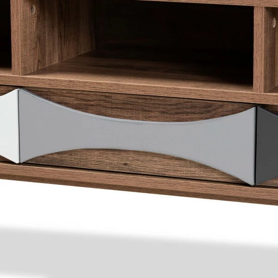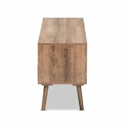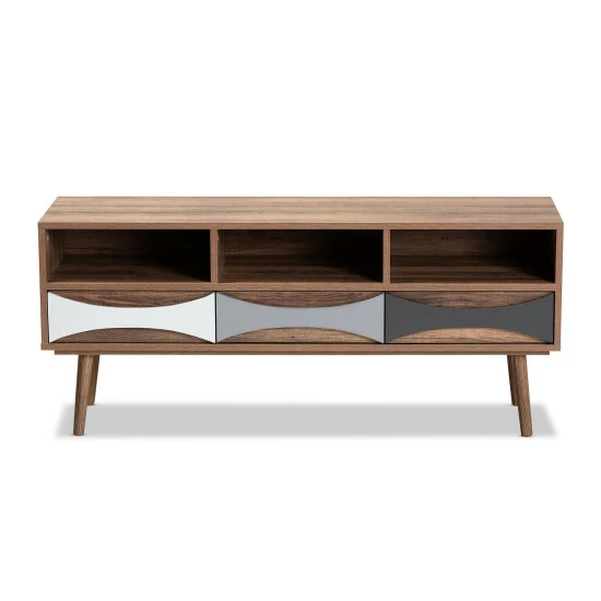 Update the character of your home with the contemporary design of the Leane TV stand. Made in China, this stunning piece is constructed from sturdy wood. Three shelves create a convenient display for all your living room essentials, while three drawers offer more secure storage space. Requiring assembly, the Leane features concave drawer handles that add geometric texture. Angled legs lend a classic feel, making the Leane TV stand a remarkable addition to any space…