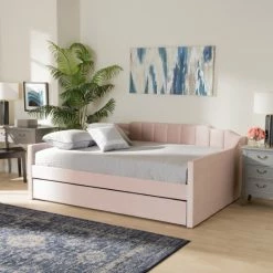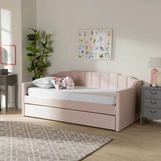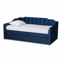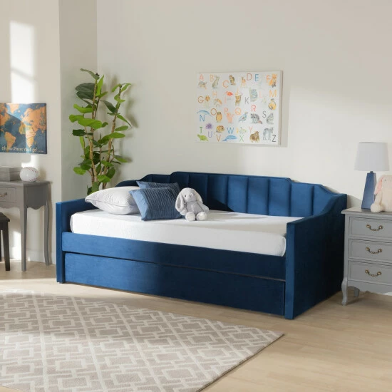 Imbue your bedroom with the tasteful design and plush comfort of the Lennon daybed. Made in Malaysia, the Lennon is comprised of a wood frame padded with foam and upholstered in sumptuous velvet fabric. Channel tufting lends a crisp, contemporary touch, while the roll out trundle provides convenient accommodation for overnight guests. Requiring assembly, the Lennon utilizes wood slats for mattress support, which eliminate the need for a box spring. Stepped detailing creates an elegant silhouette, making the Lennon daybed a serene addition to any space…