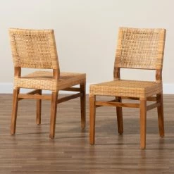 Fashion a cherished arrangement for every meal with the delightful Lesia dining chair. Made in Indonesia, this chair is comprised of a study Mahogany wood frame wrapped in natural rattan. The square backrest forms a crisp silhouette, while woven detailing highlights the intricate craftsmanship of the piece. The Lesia will arrive fully assembled and features an angled backrest and legs for stable yet cozy support. Perfect for indulging with friends and family, the Lesia dining chair elevates any occasion.