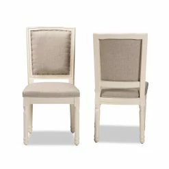 Craft a charming dining room atmosphere with the old-world inspired design of the Louane dining chair. Made in China, this chair is comprised of a study wood frame padded with plush layers of foam and upholstered in smooth fabric. With a square backrest, this chair is adorned with a vintage nail head trim as well as molded accents that convey a classic, antique-like feel. Requiring assembly, the Louane features turned legs that lends an elegant outline while providing the chair with excellent stability and support. A remarkable piece that encapsulates old-fashioned glamour, the Louane dining chair elevates any occasion…