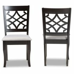 Cultivate an air of elegance in your dining room with the Mael dining chair. Made in Malaysia, the Mael is constructed from solid wood in a dark brown finish that complements the light fabric upholstery. Designed with both comfort and style in mind, the Mael features a plush foam-padded seat, as well as an exquisite cut-out design on its back. Saber legs add a classic, refined touch. Requiring assembly, the Mael dining chair is well suited for both casual and formal occasions…