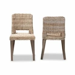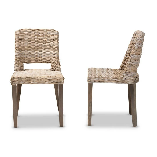 Bring out the laidback, casual quality of your space with the tender tones of the Magy dining chair. Made in Indonesia, this chair is comprised of a sturdy wood frame wrapped in natural rattan. Its rounded backrest forms a smooth outline while the cut-out embellishment lends a pleasant, open feel. The Magy will arrive fully assembled and features angled back legs for excellent stability and support in expressive design. Perfect for creating a carefree environment for every meal, the Magy dining chair brings an unforgettable mood to any occasion.