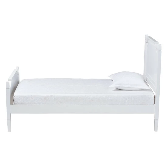Create a cozy sanctuary in your bedroom with the Mariana platform. Made in Malaysia, this timeless piece is crafted from sturdy wood. Cut-out panels embellished with raised molding lend an elegant, regal appearance while maintaining a sleek silhouette. The Mariana requires assembly and utilizes wood slats for mattress support, eliminating the need for a box spring. Scalloped corners and tapered legs complete the look, making the Mariana platform bed a beautiful sanctuary of any bedroom.