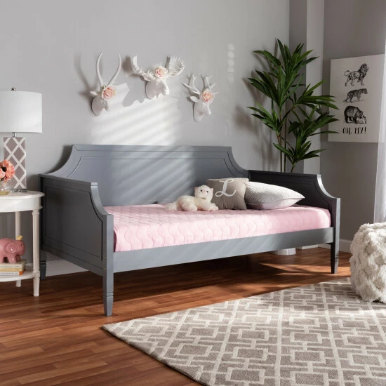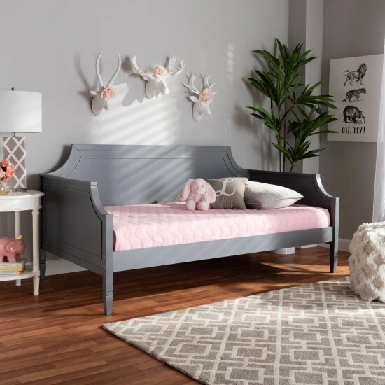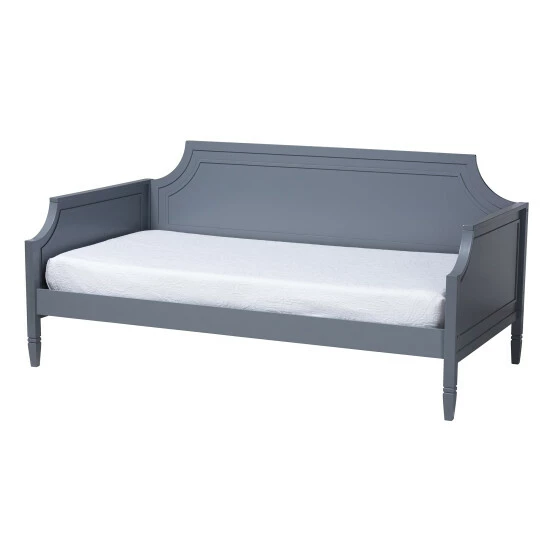 Create a cozy sanctuary for lounging or sleeping with the Mariana daybed. Made in Malaysia, this lovely piece is crafted from sturdy wood. Cut-out panels embellished with raised molding lend an elegant, regal appearance while maintaining a sleek silhouette. The Mariana requires assembly and utilizes wood slats for mattress support, eliminating the need for a box spring. Scalloped corners and tapered legs complete the look, making the Mariana daybed a astonishing oasis in any layout.