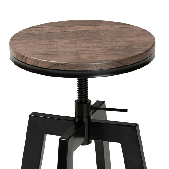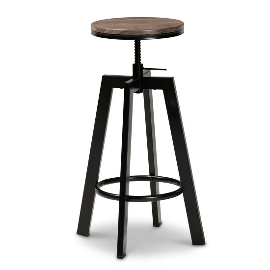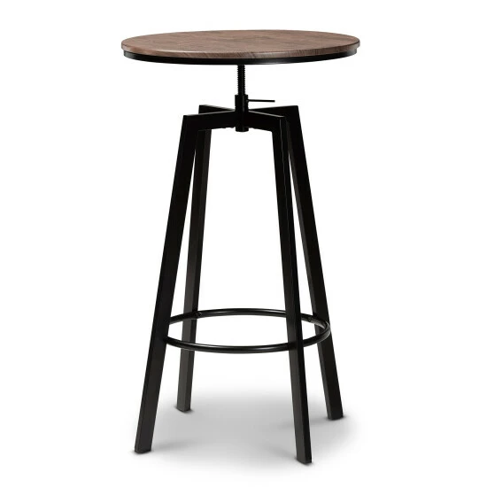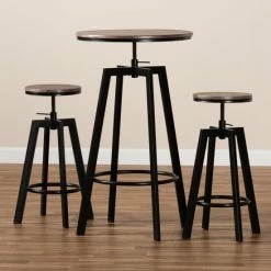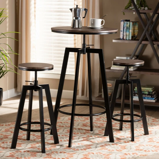 Add a cool industrial vibe to your dining area with the Maritta bar set. Made in China, this set includes one table and two bar stools. Each piece is built from walnut finished wood and black metal, giving the pieces a chic, industrial vibe. Designed with versatility in mind, each piece is height adjustable to accommodate your needs. Swivel seats and footrests lend ample comfort while dining. Requiring assembly, the compact size of the Maritta bar set makes it well suited for smaller spaces..