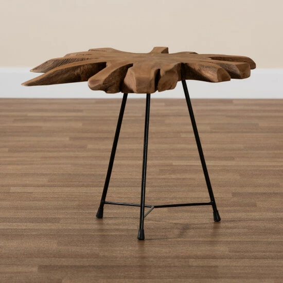 Bring a touch of nature into the landscape of your interior with the remarkably crafted Merci end table. Made in Indonesia, this handy piece is comprised of a solid metal frame topped with a unique piece of teak wood. Each table is constructed using the naturally grown trunk of the teak tree, resulting in a truly unique design that is irreplaceable. The Merci will arrive fully assembled and utilizes angled legs for excellent stability and support. Offering handy convenience in a pure, natural design, the Merci end table is a refreshing addition to any space.