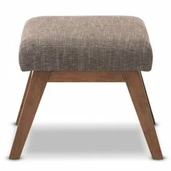 Mid-century modern style makes this handsome ottoman a true charmer. This minimalist footstool pairs the dark walnut finished exposed wood with the superb softness of gravel grey and brown upholstery. Perfect for living room, study or office, the simplicity in design leads the mid-century modern feel of this piece of furniture. Created to be the companion of the Methodios lounge chair, the Methodios looks cool by itself as an ottoman or footstool. Made in Malaysia, the ottoman requires assembly.