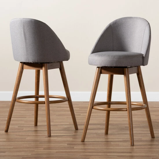 Enhance your home bar with the retro charm of the Carra bar stool. Constructed from solid rubberwood and wood veneer, the Carra showcases a warm walnut brown finish that complements the polyester fabric upholstery. The seat and back are padded with foam for endless hours of comfort as you sip cocktails.