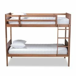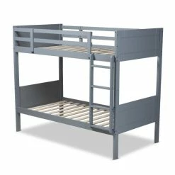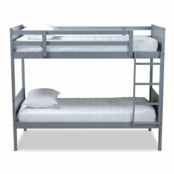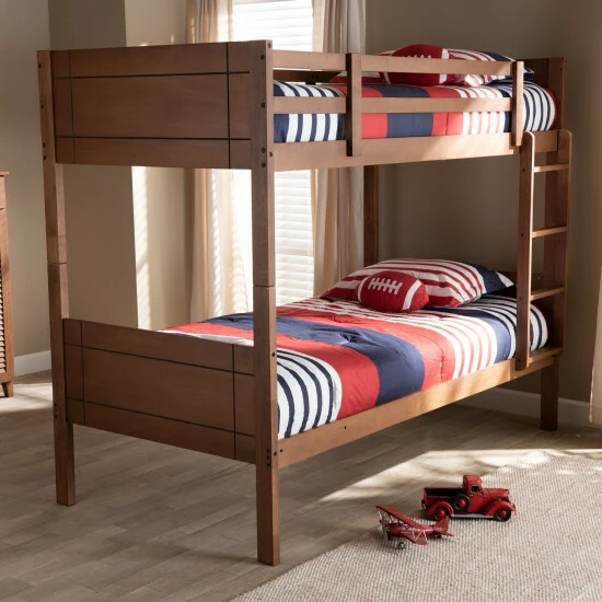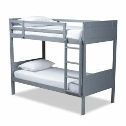 Leave more room for playtime with the compact design of Elsie bunk bed. Constructed from wood, the bed showcases a refined neutral finish that is easy to coordinate with any color palette. Designed with the utmost safety in mind, the Elsie is equipped with a fixed ladder, as well as sturdy guard rails on the top bunk.