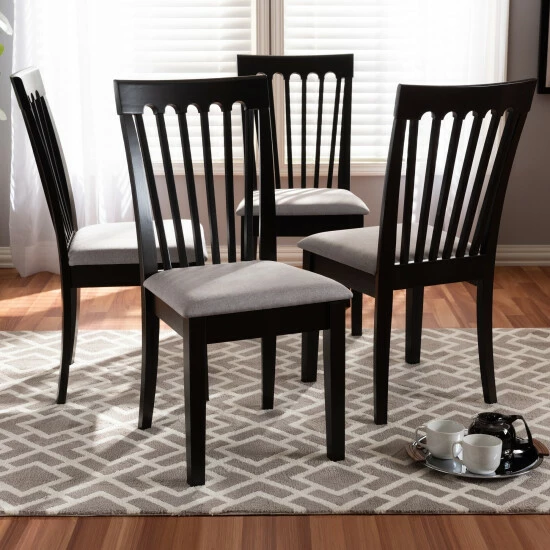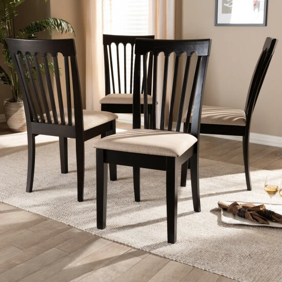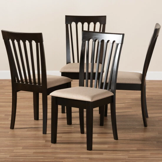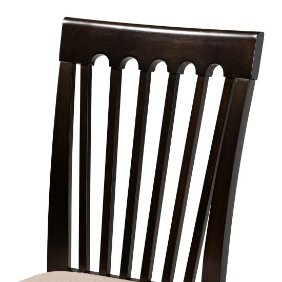 Timeless design is merged with modern comfort in the Minette dining chair. This solid rubberwood chair features a sleek espresso finish that complements the light polyester fabric upholstery. An optimal balance of comfort and style, the Minette features a plush foam-padded seat, as well as a striking cut-out design on its back for enhanced visual appeal.