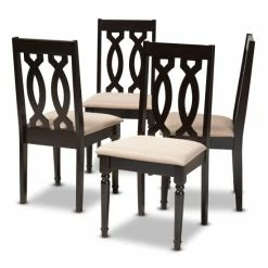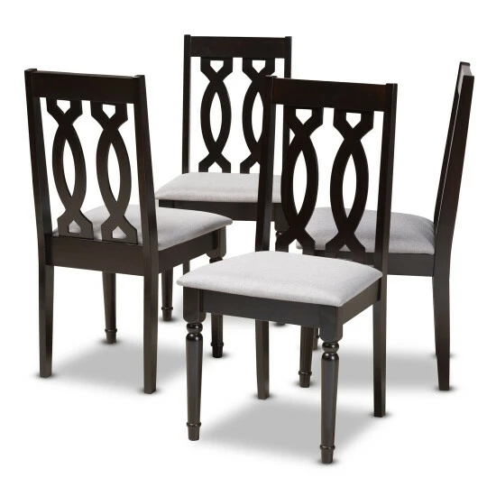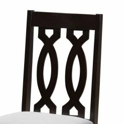 Elegance and comfort define the Cherese dining chair. Constructed from solid oak wood, the Cherese showcases a rich espresso brown finish that complements the light polyester fabric upholstery. Designed with both comfort and style in mind, the Cherese features a plush foam-padded seat, as well as an exquisite cut-out design on its back.