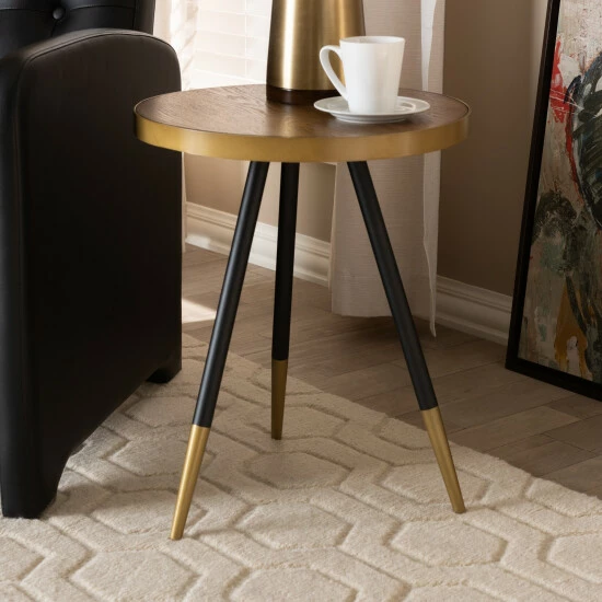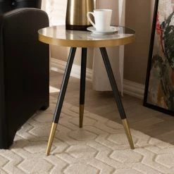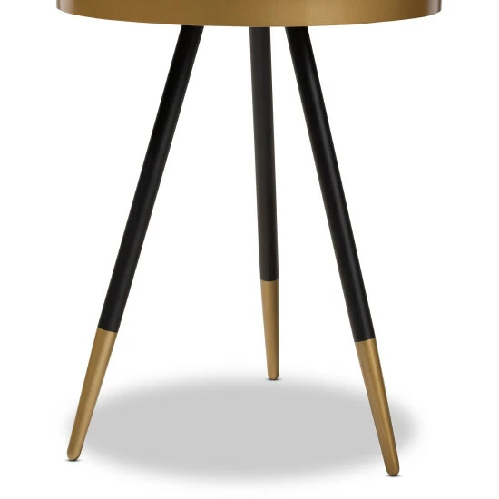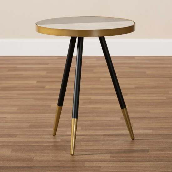 A seamless blend of luxe elements makes the Lauro end table a stunning addition to any living room or bedroom. The tabletop is encased within a striking gold-finished frame that provides a sense of harmony among the two-tone black and gold-tone table legs. Made in China