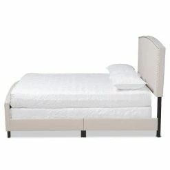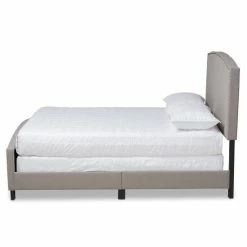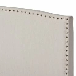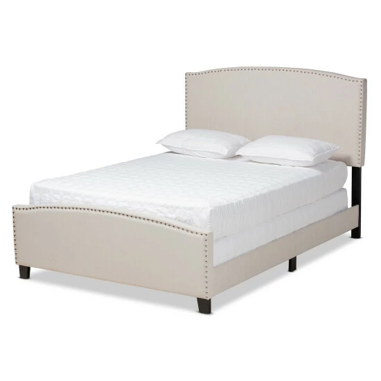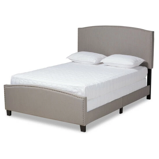 Design a relaxing sleeping space with this Morgan panel bed from Baxton Studio. With its gracefully arching headboard and footboard and textured linen-look fabric upholstery, this piece softens the look of your bedroom to create a soothing vibe. Padding on the headboard creates a cozy place to sit up in bed, and the tapered feet ensure stability on carpet or hard flooring. Rows of nailhead trim run along the front and back, adding a traditional touch to your contemporary home.