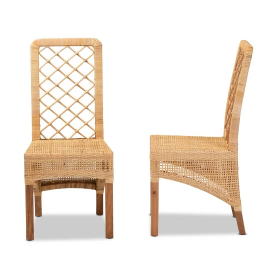 Develop an atmosphere of bliss in your space with the delightful Moscow dining chair. Made in Indonesia, this chair is comprised of a sturdy Mahogany wood frame wrapped in natural rattan. The tall backrest lends a distinguished silhouette, while slim rattan rods form a smooth embrace. The Moscow will arrive fully assembled and features angled legs for excellent stability and support. Showcasing exquisite, tropical-style craftsmanship, the Moscow dining chair grants an alluring touch to any dining arrangement.