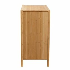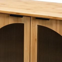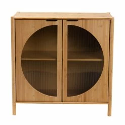 Express a style of casual elegance in your space with the carefree flair of the Naresh storage cabinet. Made in China, this stunning piece exudes mid-century charm with a bamboo frame embellished with crescent windows. The doors open to reveal two spacious shelves to organize household essentials while the tabletop serves as a fantastic display area for decorations. The Naresh requires assembly and features minimalist door handles to draw attention to the natural grain of the wood. Clean lines and rounded legs produce a delightful silhouette, making the Naresh storage cabinet a chic accent in any layout.