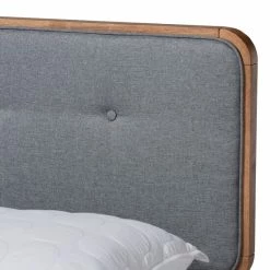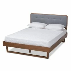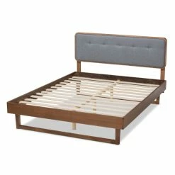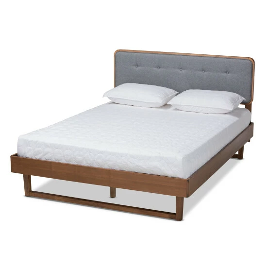 Add a charming backdrop to your bedroom with the Natalia bed. Made in Malaysia, the Natalia features classic ash walnut brown finished wood with dark grey fabric to complement any color palette. Assembly is required and a box spring isn’t necessary, as the Natalia comes with internal slats for mattress support. Six pre-drilled holes on top of the headboard provide five different height configuration options to fit your needs. A foam-padded headboard upholstered in dark grey fabric and accented with a single row of button tufting offers excellent back support in a cool, mid-century inspired look..