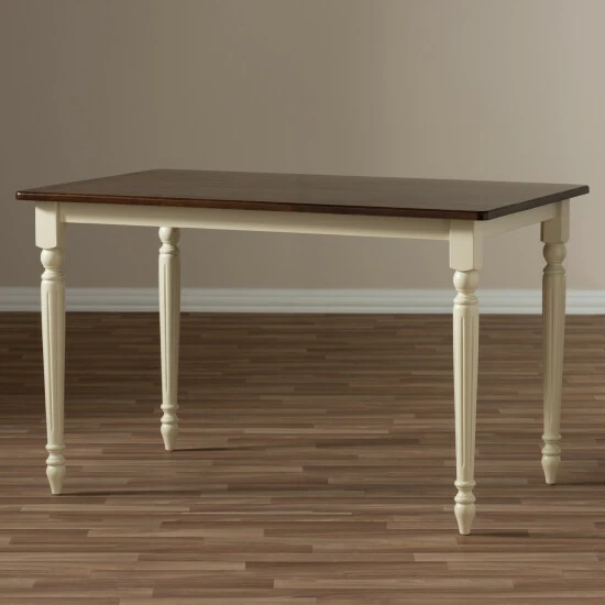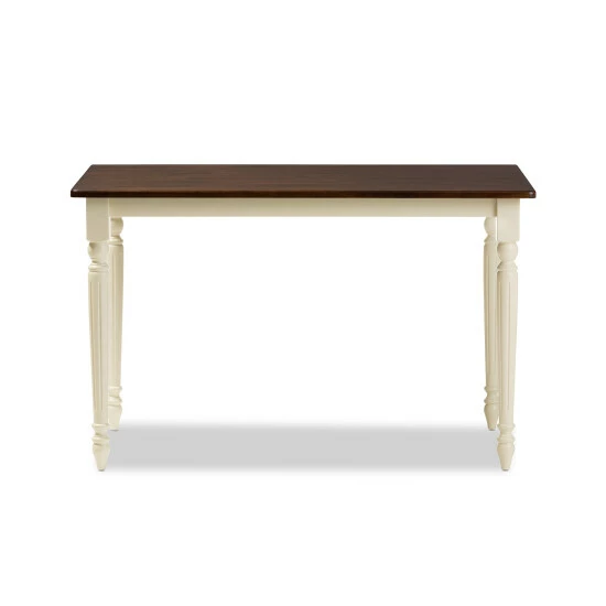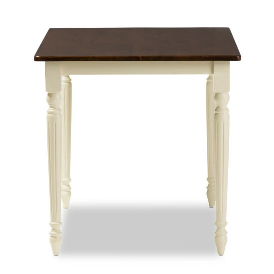This attractive dining table features antiqued cherry top and creamy buttermilk paint finished base for a casual, vintage-inspired look. Sure to look beautiful in any home, this dining table is ideal for country cottages and modern townhouses alike. Expertly crafted from solid rubberwood, the Natasa Dining Table features a solid cherry top supported by four detailed turning legs. Two-tone finishing and elegant ball design, this timeless collection is ideal for inviting friends over. Designed to seat four to six guests, the Natasa is suitable as kitchen breakfast table or a casual dining table. Made in Malaysia, the Natasa requires assembly.