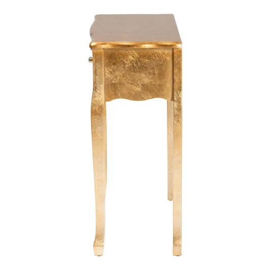 Give your interior layout a boost with the timeless luxury of the Newton console table. Made in China, this handy piece consists of a solid wood frame adorned with glittering faux crystal drawer knobs. Two drawers offer secure storage space to organize household essentials while the wide tabletop serves as a wonderful display area. The Newton requires assembly and features beautiful cabriole legs for excellent stability and support in stunning design. Scalloped edges create a gorgeous silhouette, making the Newton console table a fantastic household accessory.
