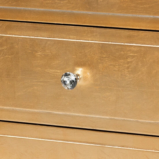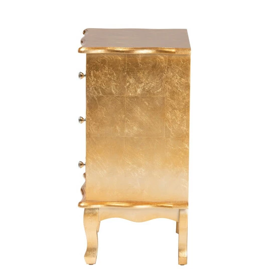 Give your daily routine a boost with the timeless luxury of the Newton end table. Made in China, this handy piece consists of a solid wood frame adorned with glittering faux crystal drawer knobs. Three drawers offer plentiful storage space for space essentials while reserving the tabletop for daily use. The Newton will arrive fully assembled and features beautiful cabriole legs for excellent stability and support in stunning design. Scalloped edges create a gorgeous silhouette, making the Newton end table a fantastic space accessory.