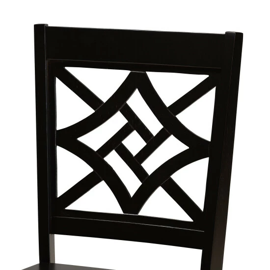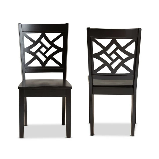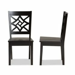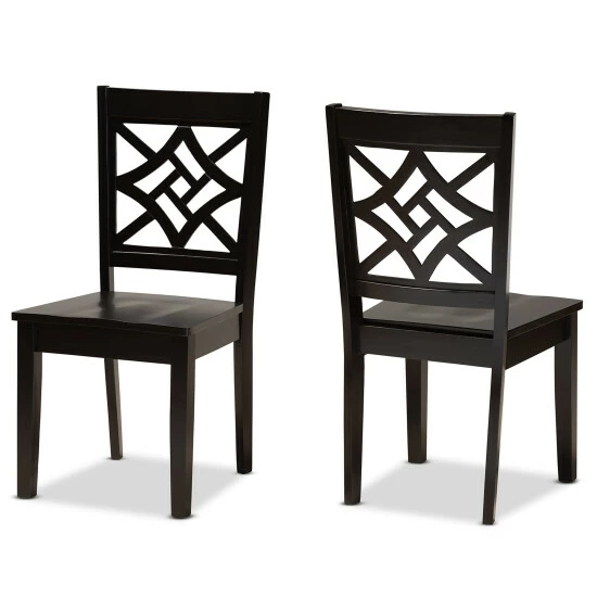 Add crisp, contemporary design to your dining space with the visually striking Nicolette dining chair. Made in Malaysia, the Nicolette is comprised of a sturdy wood frame showcasing a rich dark brown finish. The backrest features a unique, geometric design for added visual appeal. Requiring assembly, the chair features a smooth scoop seat for casual comfort. Comfortable and stylish, the Nicolette dining chair elevates any dining experience…
