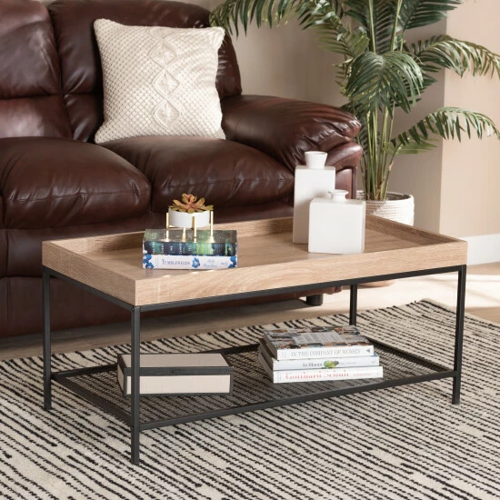 Boasting the charm of modern efficiency, the Overton coffee table is a fantastic anchor for any common space. Made in China, this handy piece is comprised of a metal base fitted with a wood tabletop. The mesh metal shelf serves as convenient storage and display area while reserving the tabletop for daily use. The Overton requires assembly and features raised edges for a more streamlined silhouette. Bringing the room together, the Overton coffee table exemplifies modern interior design.