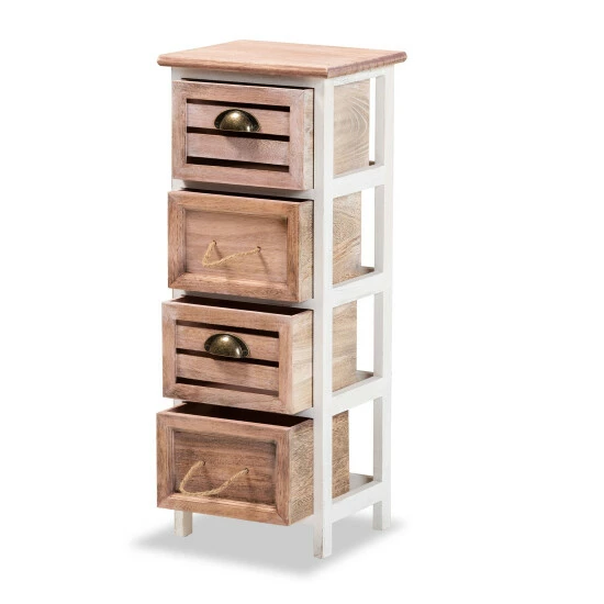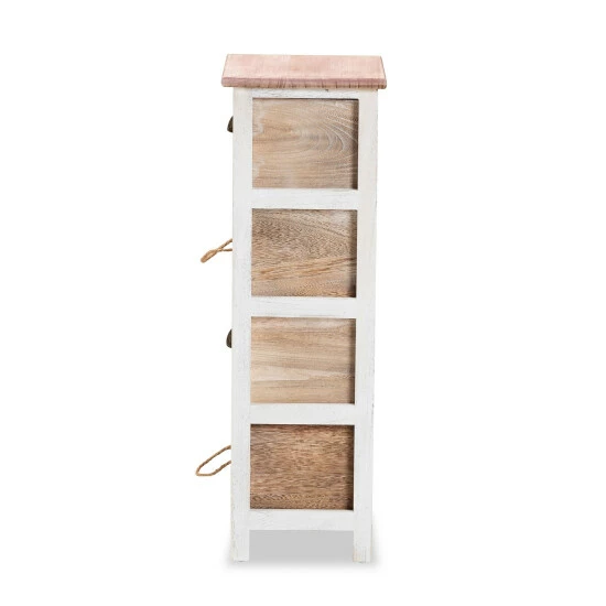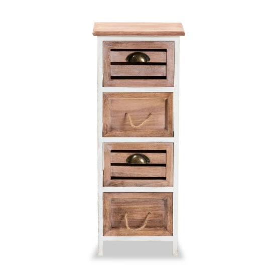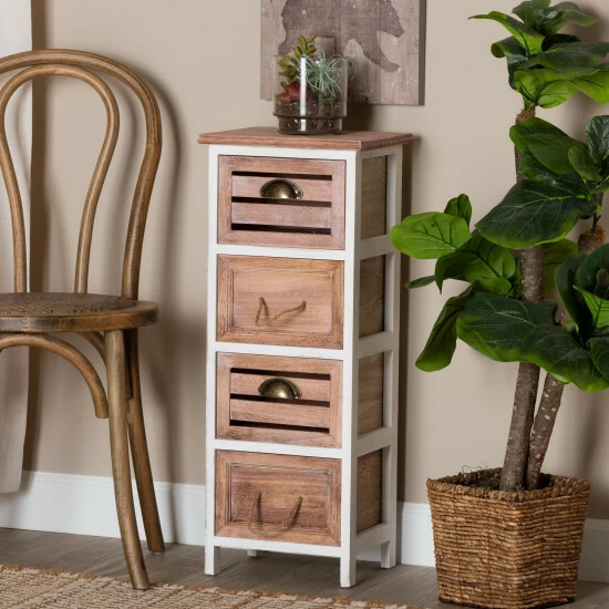 Conveying the elements of contemporary design, the Palta storage unit add a versatile accent to your space. Made in China, this handy piece is crafted from sturdy wood. Four drawers offer space to organize household essentials, while sleek cut-outs highlight the dynamic texture and depth of the piece. Requiring minor assembly, the Palta is adorned with metal and yarn drawer handles that stand out against the wood. The streamlined frame allows the unit to fit well in tight spaces, making the Palta storage unit a fantastic addition to the modern home…