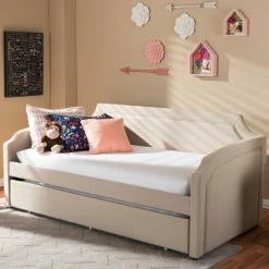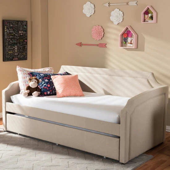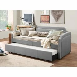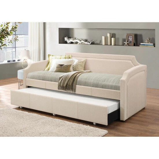 - Modern and contemporary upholstered sofa twin size daybed with roll-out trundle guest bed