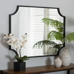 Introduce an aura of bold refinement to your interior with the stunning Parcenet wall mirror. Made in China, this avantgarde piece is comprised of a minimalist metalframe fitted with a large central mirror. Scalloped corners lend an eye-catching silhouette while complementing the clean lines of the piece. The Parcenet will arrive fully assembled and is wall mountable. A distinguished piece of modern craftsmanship, the Parcenet wall mirror serves as an elegant accent.