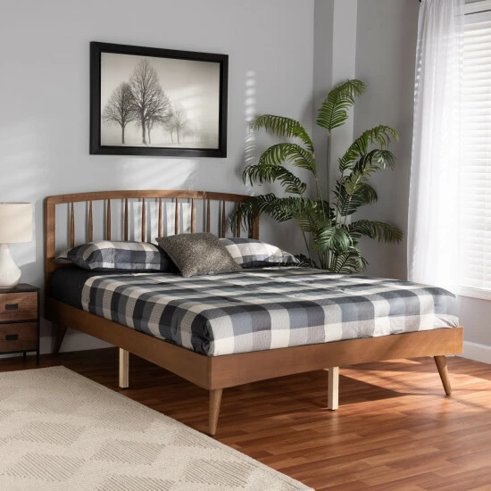 Discover the potential of your bedroom with the transformative design of the Paton bed. Made in Malaysia, this bed features a classic spindle headboard that enables light to flow more freely throughout the room. The slight curves of the headboard combine with sleek, angled legs to give the bed a truly remarkable silhouette. The Paton requires assembly and utilizes wood slats for mattress support, which eliminate the need for a box spring. A contemporary piece with elements of traditional design, the Paton bed is an outstanding addition to the modern bedroom…