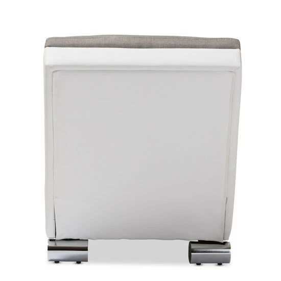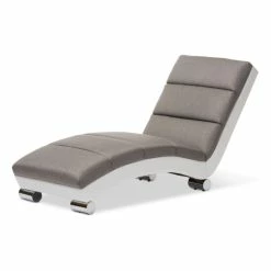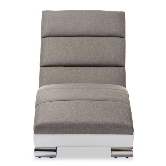 Rest your muscles with this Baxton Studio Percy chaise lounge. Featuring generous padding, a reclined back, and a curved seat, this chair offers full-body relaxation. The white faux-leather and grey upholstery set a contemporary tone, and the chrome base adds a subtle touch of shine.