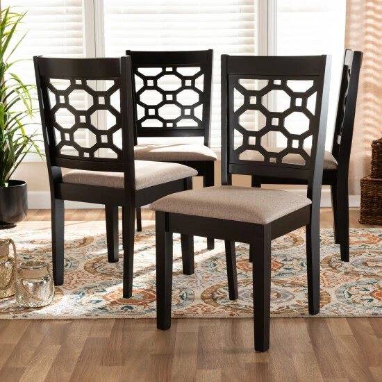 Update your dining space with the contemporary style of the Peter dining chair. Made in Malaysia, the Peter is constructed from sturdy wood in a dark brown finish that complements the light fabric upholstery. A splendid balance of both comfort and style, the Peter features a plush foam-padded seat, as well as a unique cut-out design on its back. Requiring assembly, the chair features straight legs that convey a modern elegance. Whether it’s for casual meals or formal scenarios, the Peter dining chair easily enhances any dining space…